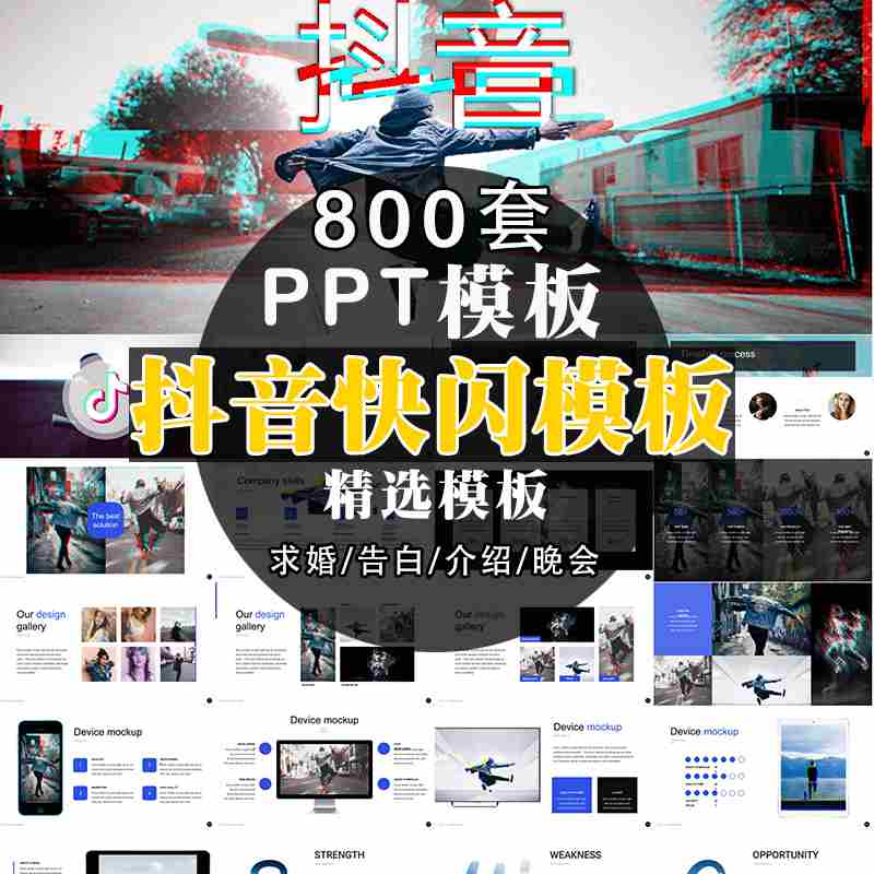 抖音同款网红快闪PPT模板视频动画 晚会开场婚礼搞笑介绍工作总结